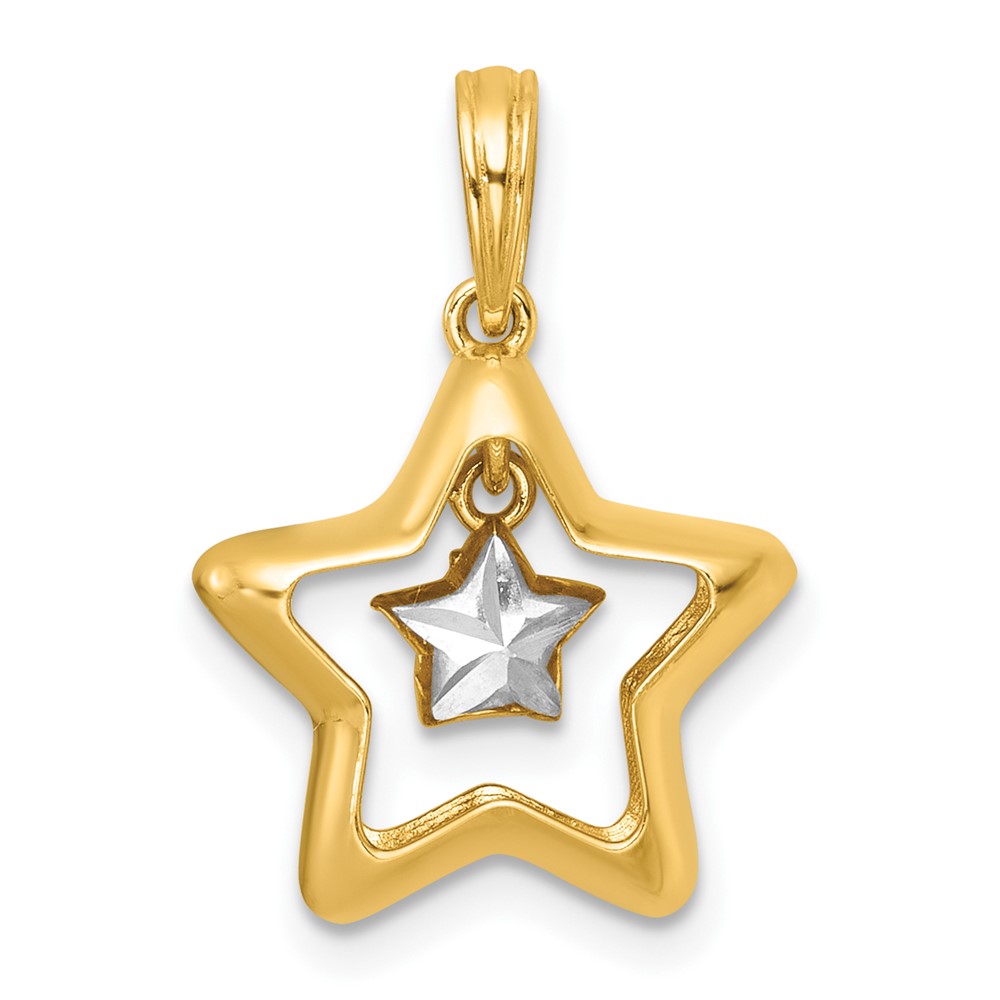 14k with White Rhodium Polished Star In Star Dangle Charm