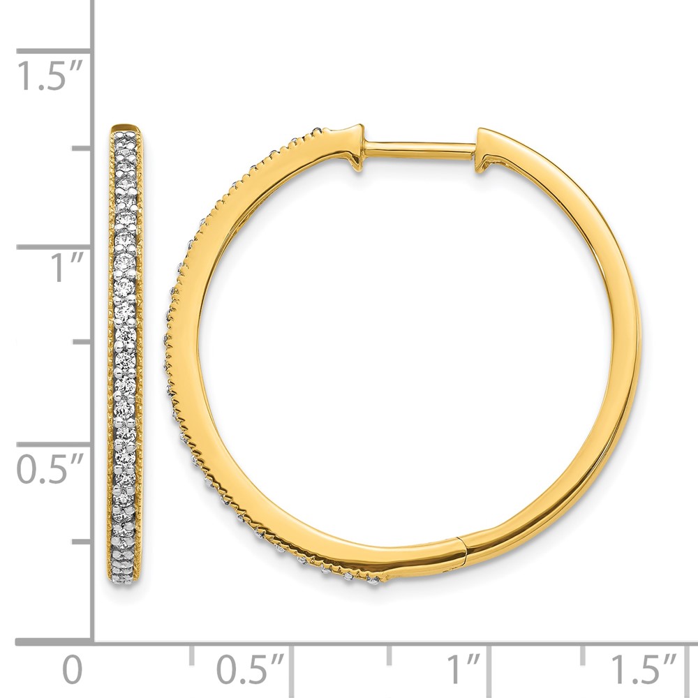 14k Yellow Gold Diamond Milgrain Hinged Hoop Earrings
