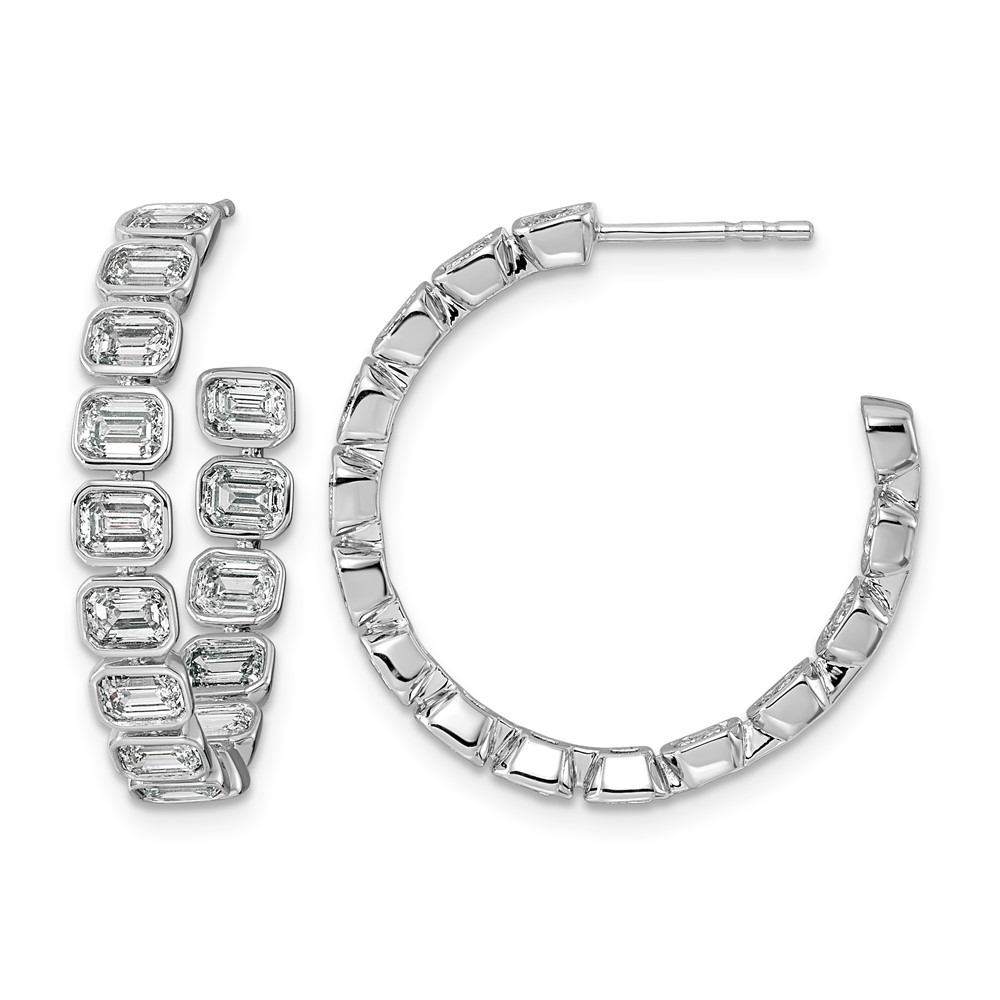 14kw 4ct Lab Grown Dia VS+ F+ Post East/West Emerald Hoop Earrings