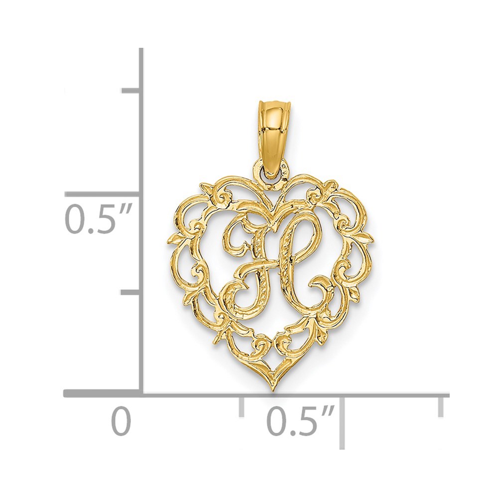 14KY Heart Script Letter H Initial Charm