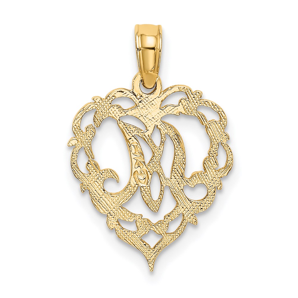 14KY Heart Script Letter M Initial Charm