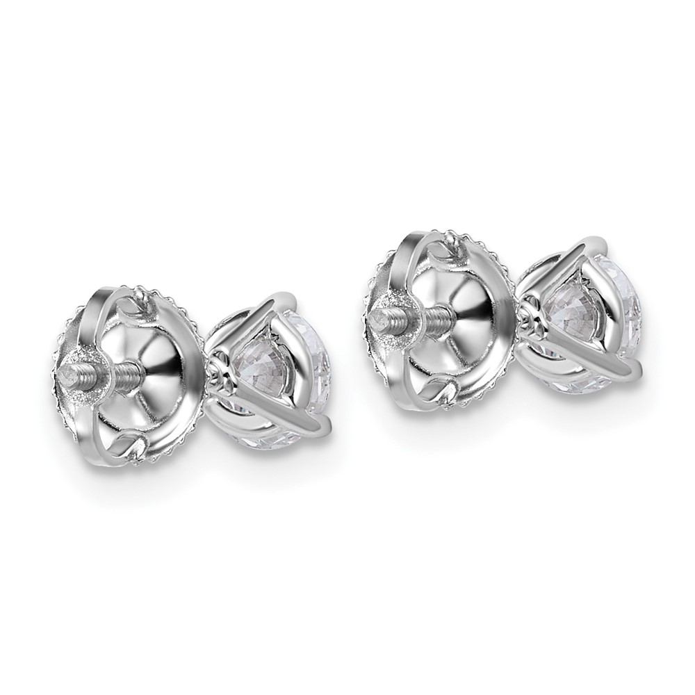 18k White Gold 1 carat Certified Lab Grown Diamond VS+ F+ Round Complete Three Prong Screwback Stud Earrings