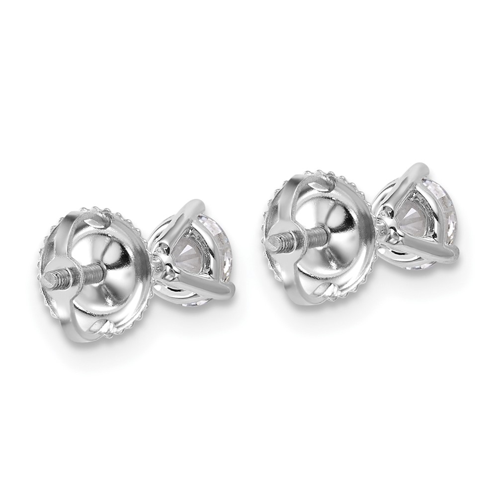 18k White Gold 3/4 carat Lab Grown Diamond VS+ F+ Round Complete Three Prong Screwback Stud Earrings