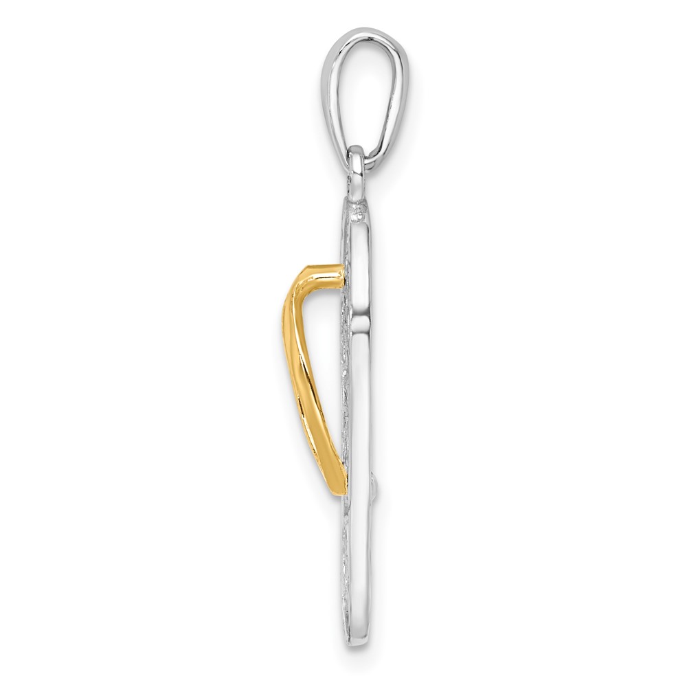 De-Ani Sterling Silver Rhodium-Plated 3D Floral Flip-flop with 14k Straps Pendant