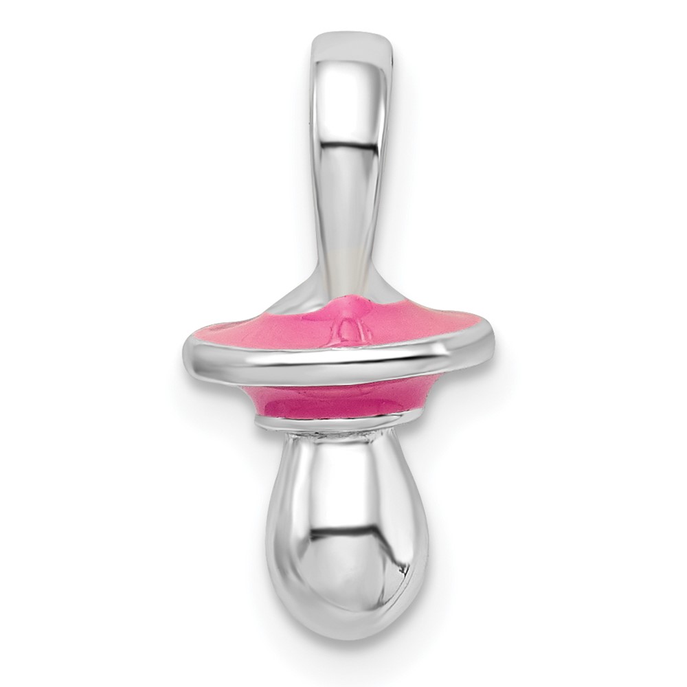 De-Ani Sterling Silver Rhodium-Plated 3D Pink Enameled Pacifier Pendant