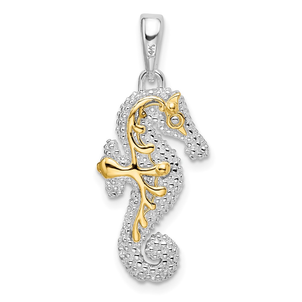 De-Ani Sterling Silver Rhodium-Plated 3D Seahorse with 14k Accent Pendant