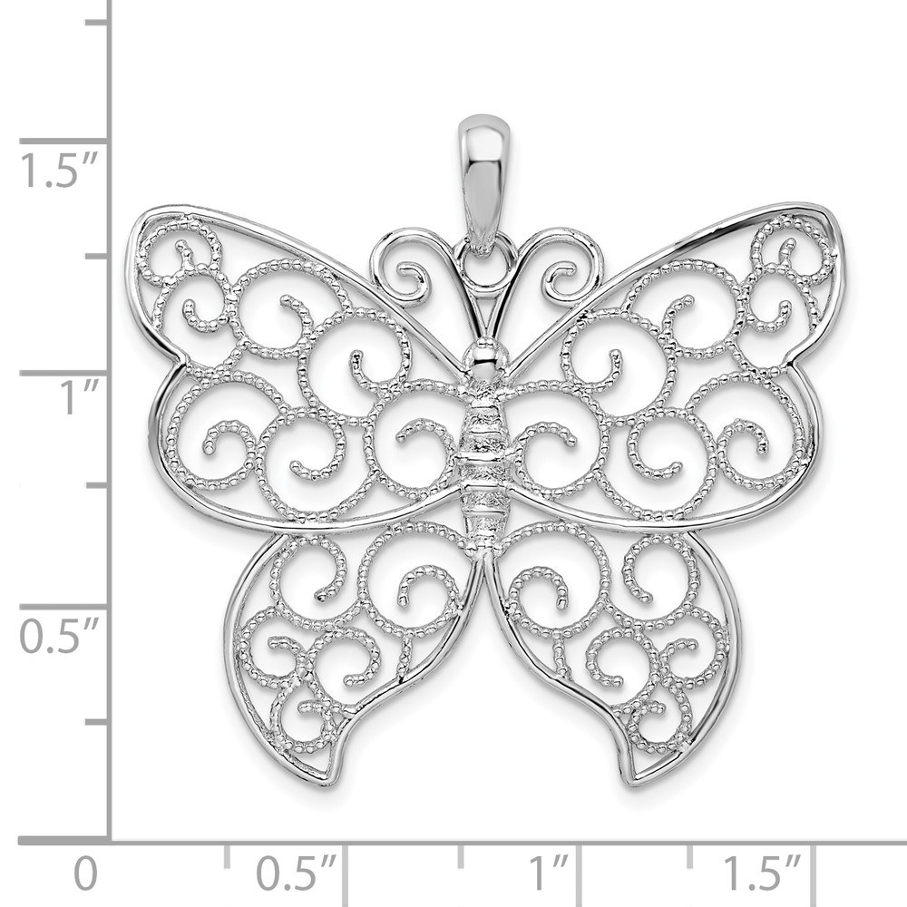 De-Ani Sterling Silver Rhodium-Plated Large Beaded Filigree Butterfly Pendant