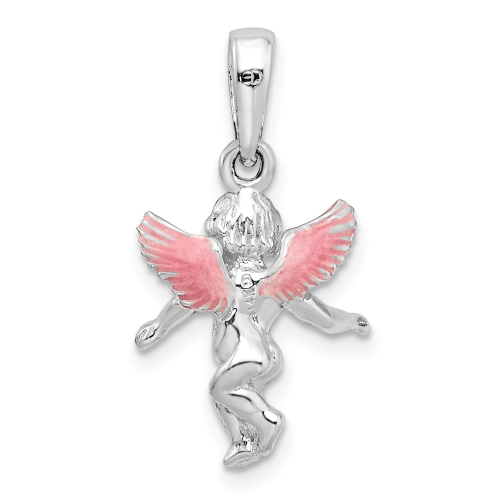De-Ani Sterling Silver Rhodium-Plated Polished 3D Enameled Angel Pendant