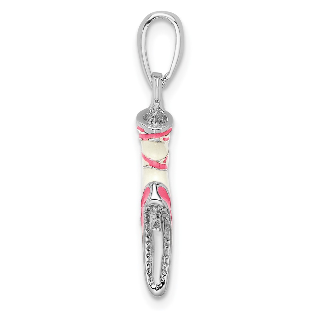 De-Ani Sterling Silver Rhodium-Plated Polished 3D Enameled Ballet Shoe Pendant