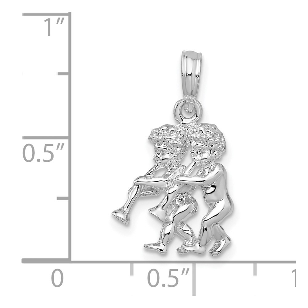 De-Ani Sterling Silver Rhodium-Plated Polished 3D Gemini Zodiac Pendant