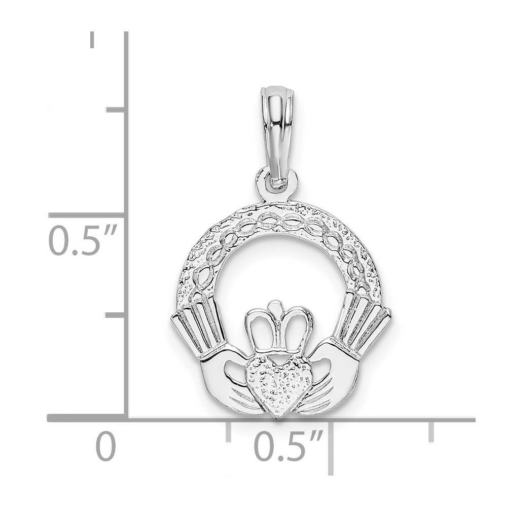 De-Ani Sterling Silver Rhodium-Plated Polished and Textured Claddagh Circle Pendant