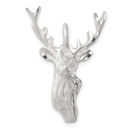 De-Ani Sterling Silver Rhodium-Plated Polished and Textured Deer Head Pendant