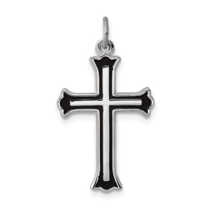 De-Ani Sterling Silver Rhodium-Plated Polished Enameled Fleur de Lis Cross Pendant