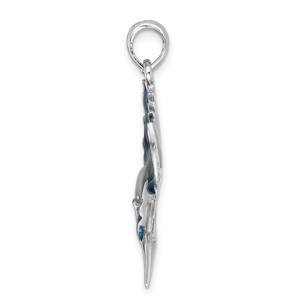 De-Ani Sterling Silver Rhodium-Plated Polished Enameled Sailfish Pendant