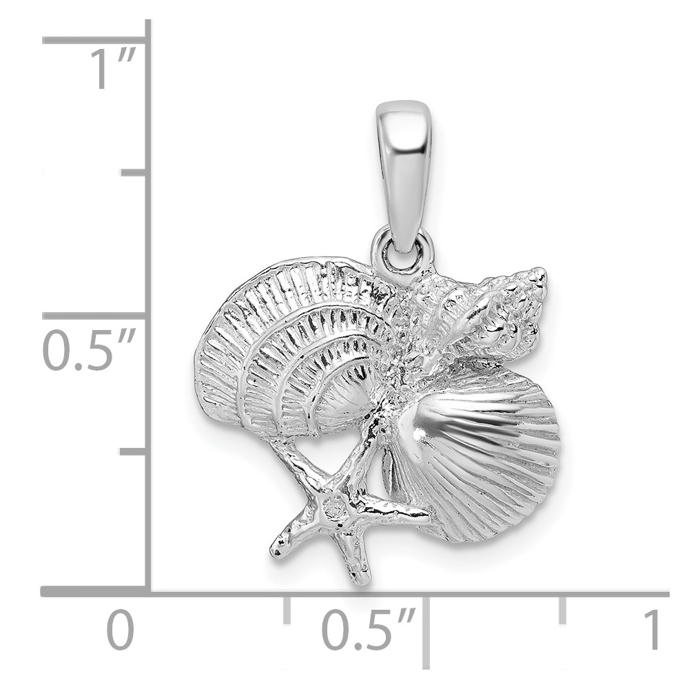 De-Ani Sterling Silver Rhodium-Plated Polished Shell Cluster Pendant