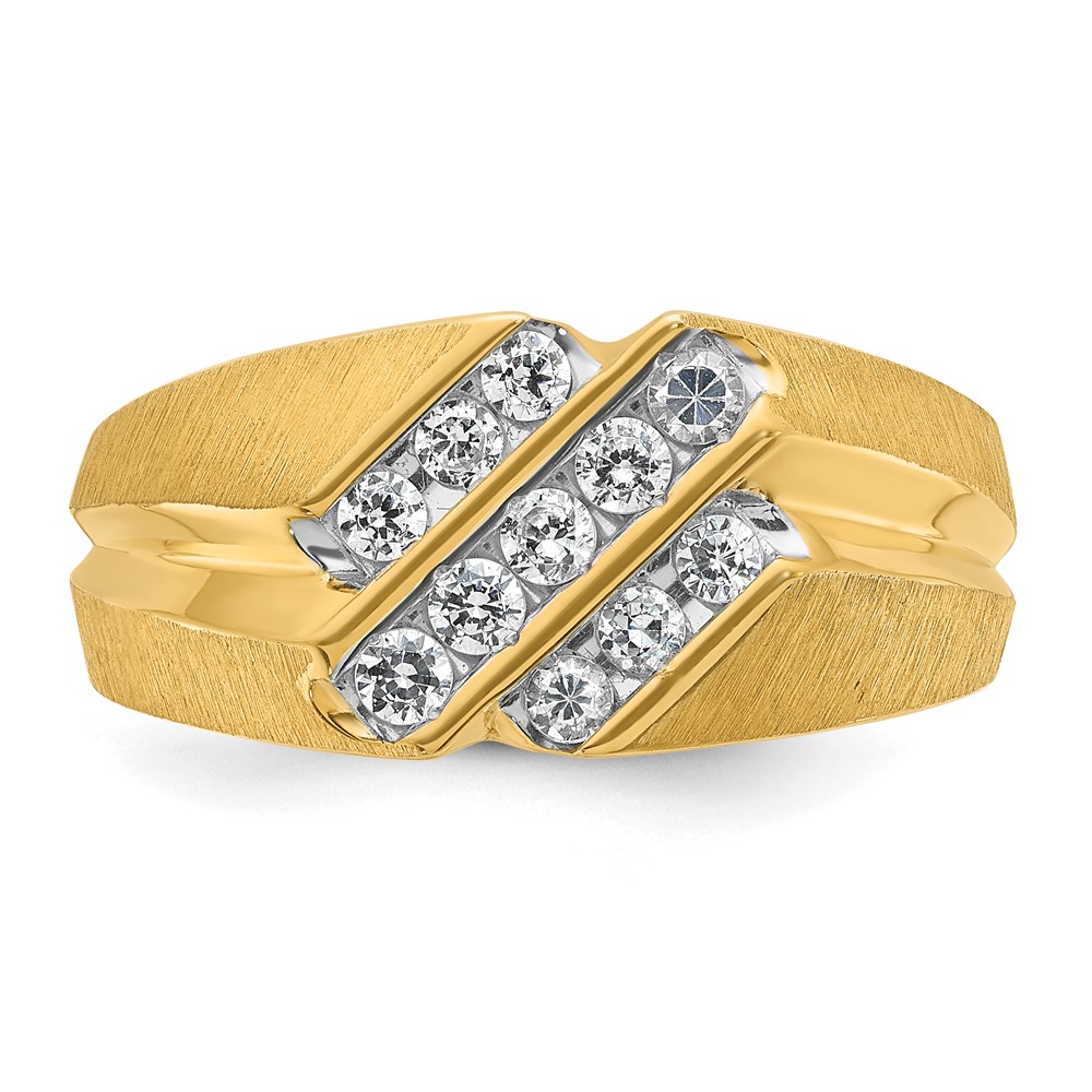 IBGoodman 10k Men’s Polished Satin and Grooved 1/2 Carat A Quality Diamond Ring