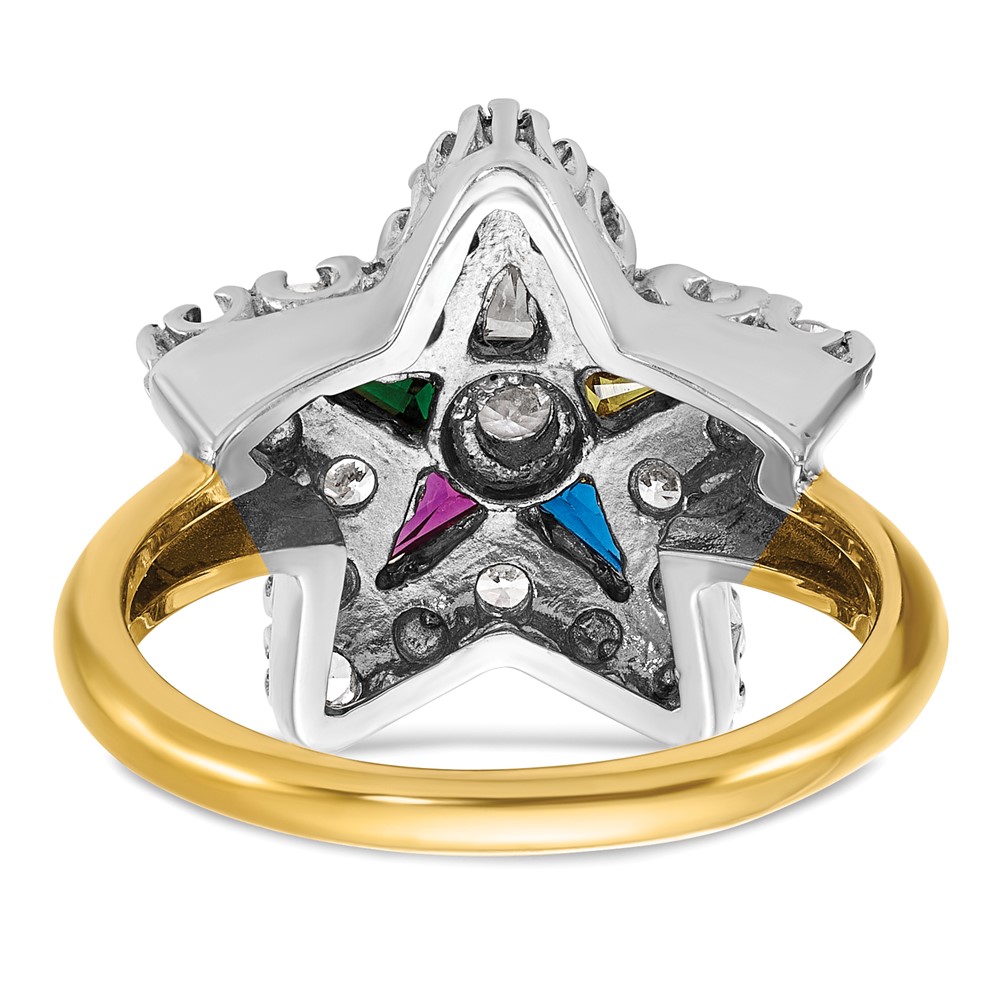 IBGoodman 10k Two-tone Women’s Polished and Beaded with Multi-color CZ and Diamond Eastern Star Masonic Ring
