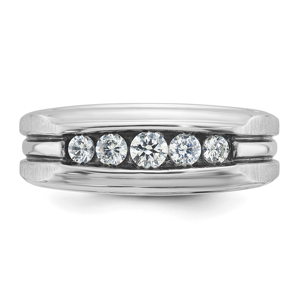 IBGoodman 10k White Gold Men’s Polished Satin and Grooved 5-Stone Ring Mounting