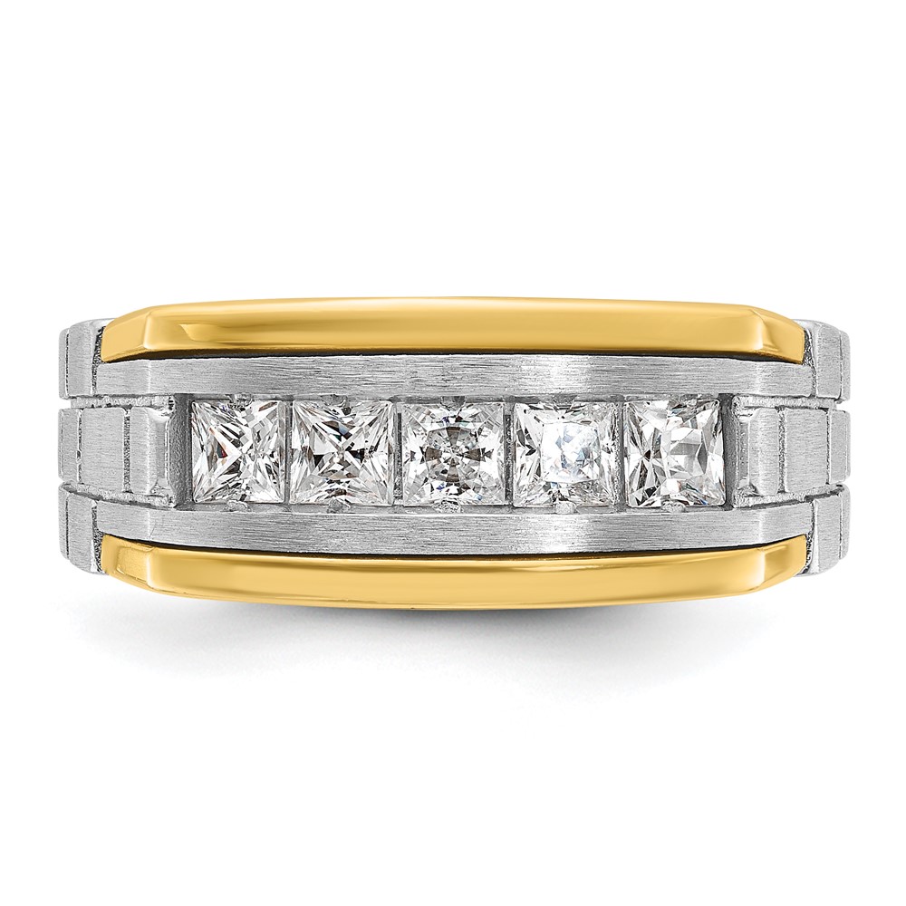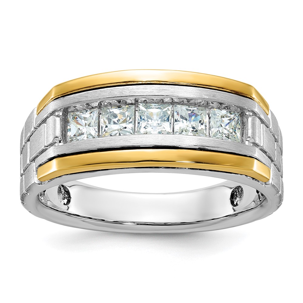 IBGoodman 14k Two-tone 1 carat Lab Grown Diamond VS/SI+ G+ Five Stone Complete Polished Satin and Grooved Men’s Ring