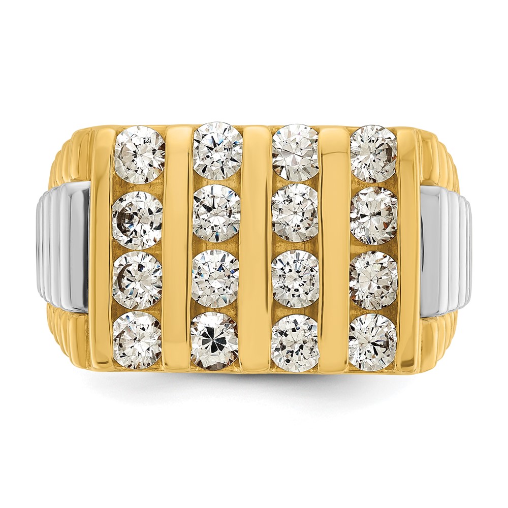 IBGoodman 14k Two-tone Men’s Polished and Textured 4-Row 2 Carat AA Quality Diamond Ring