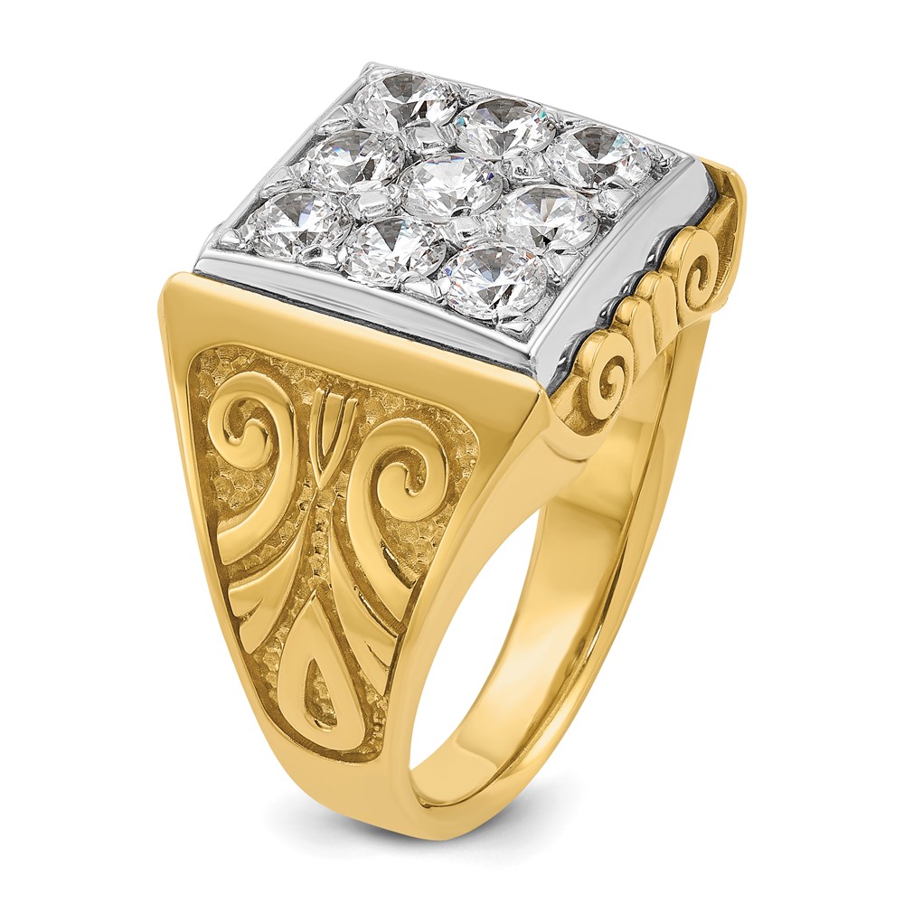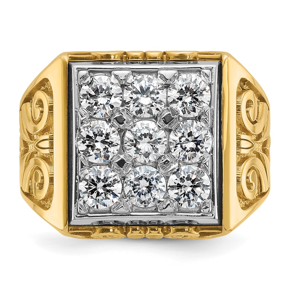 IBGoodman 14k Two-tone Men’s Polished and Textured Scroll Design 2 Carat AA Quality Diamond Square Cluster Ring