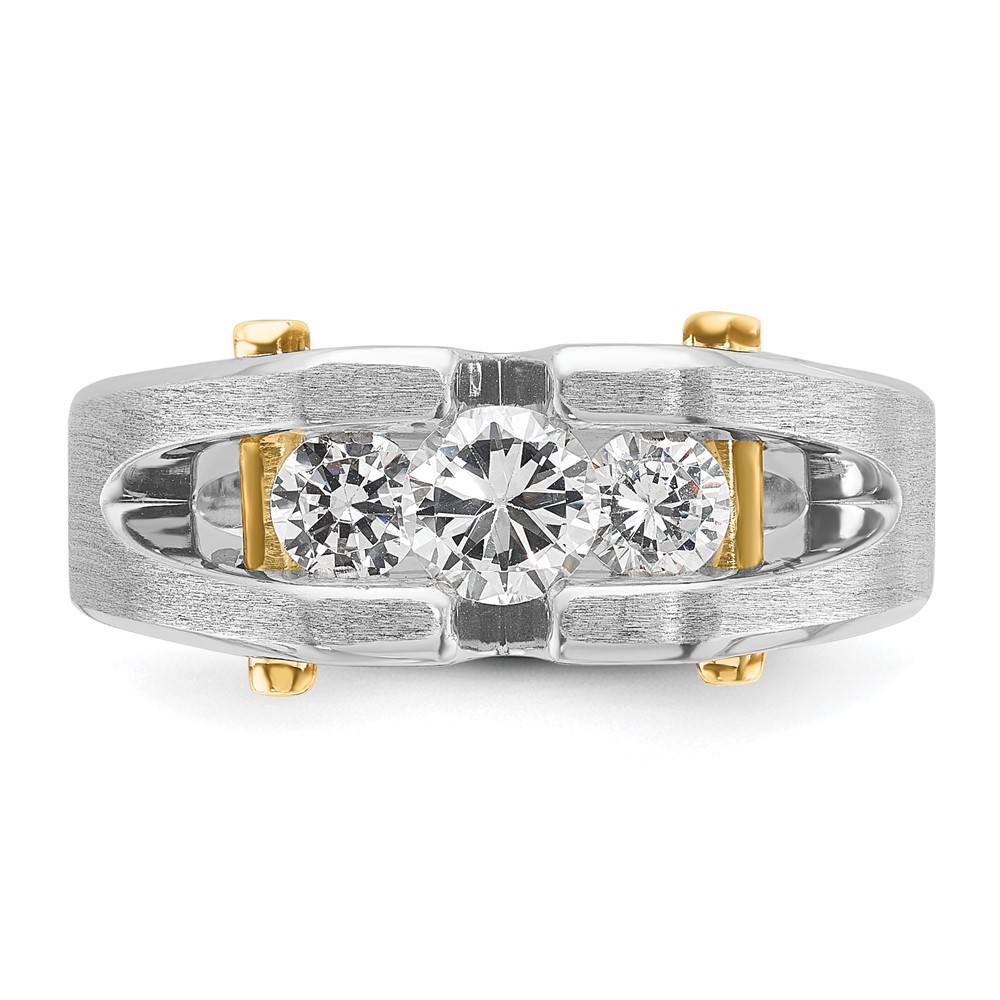 IBGoodman 14k Two-tone Men’s Polished Satin and Cut-Out 3-Stone 3/4 Carat AA Quality Diamond Ring
