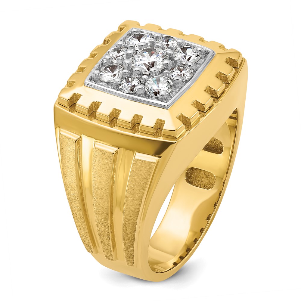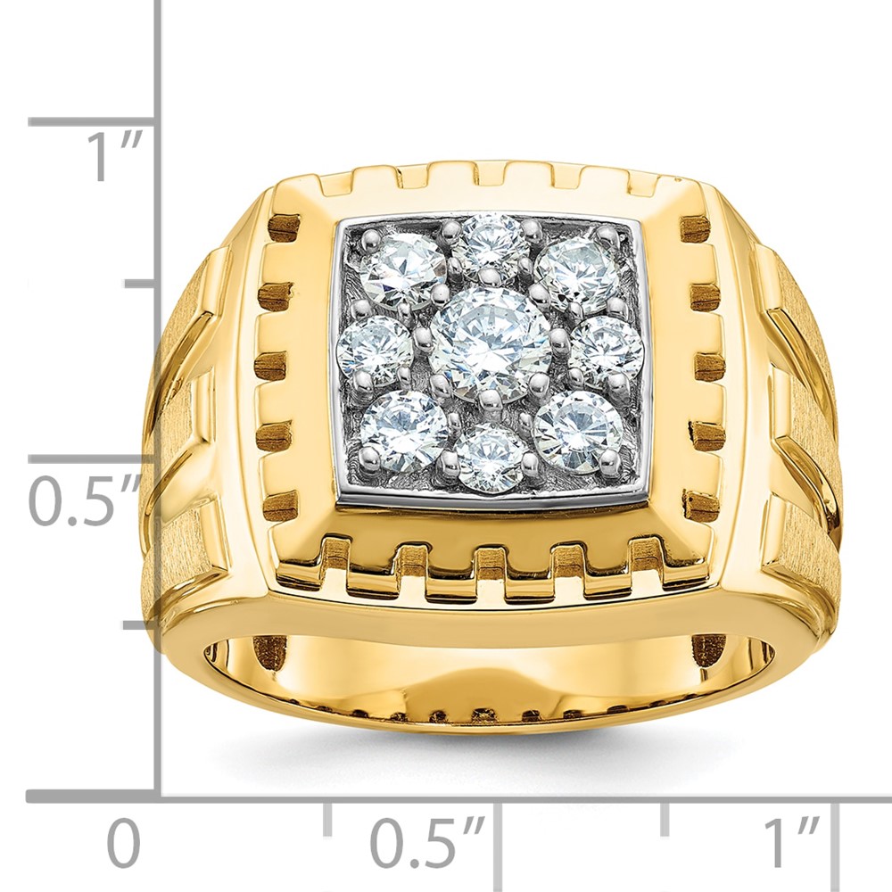 IBGoodman 14k Two-tone Men’s Polished Satin and Grooved 1 Carat AA Quality Diamond Cluster Ring