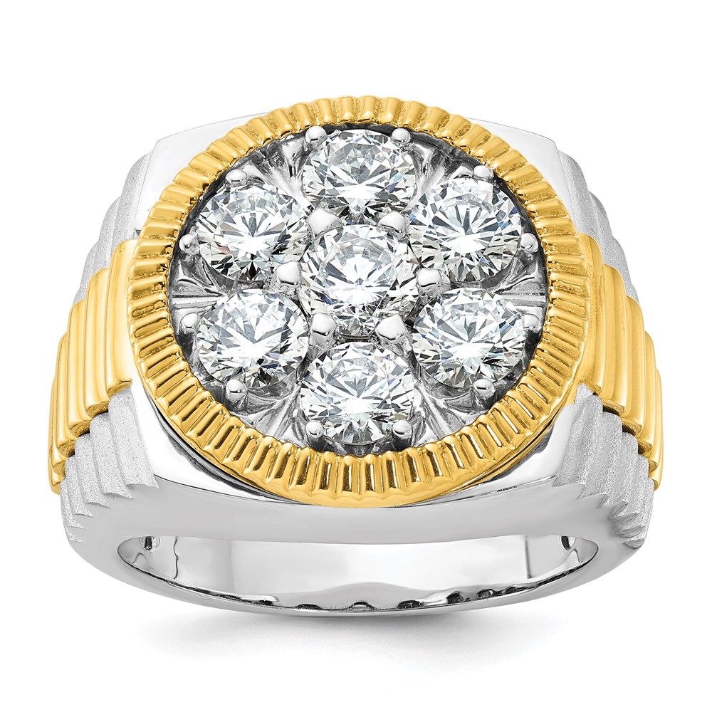 IBGoodman 14k Two-tone Men’s Polished Satin and Ribbed Round Cluster Ring Mounting