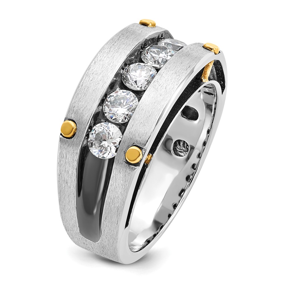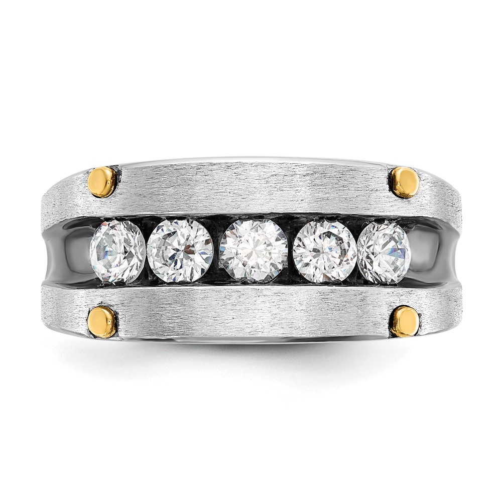 IBGoodman 14k Two-tone with Black Rhodium Men’s Polished Satin and Grooved 5-Stone 1 Carat AA Quality Diamond Ring