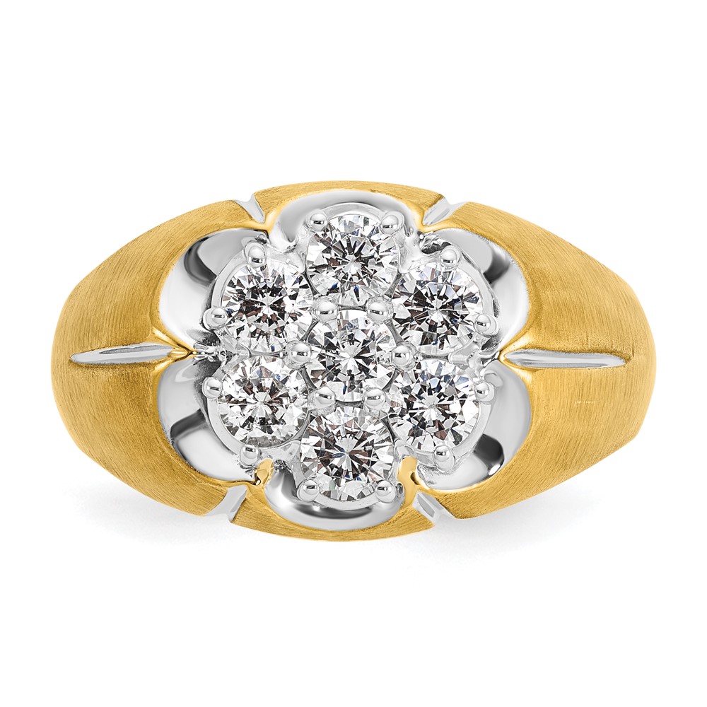 IBGoodman 14k Two-tone with White Rhodium Men’s Polished Satin and Grooved 1 Carat AA Quality Diamond Round Cluster Ring