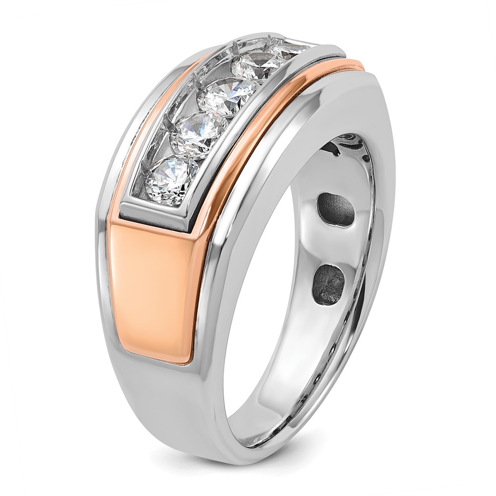 IBGoodman 14k White and Rose Gold Men’s Polished and Grooved 5-Stone 1 Carat AA Quality Diamond Ring