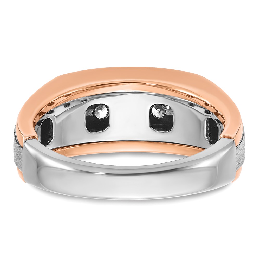 IBGoodman 14k White and Rose Gold Men’s Polished Satin and Grooved 5-Stone Ring