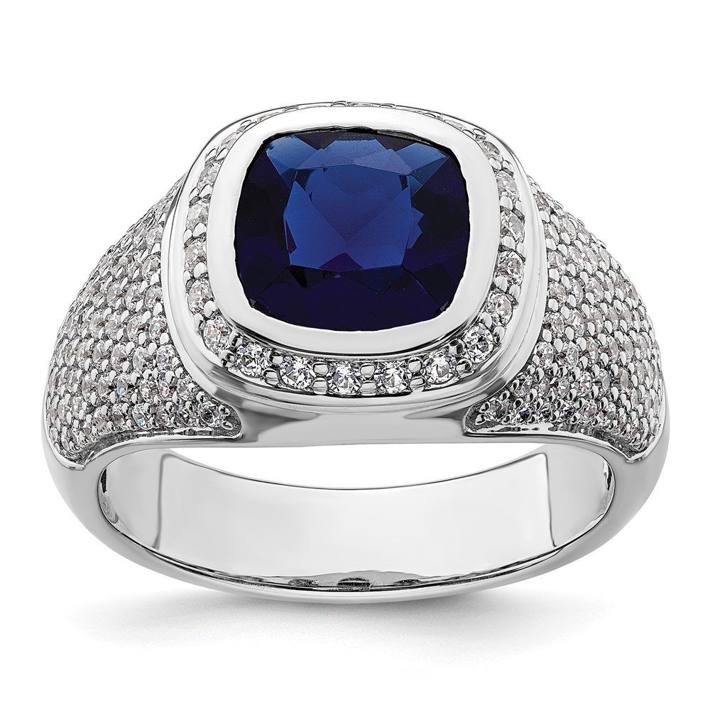 IBGoodman 14k White Gold 1 carat Lab Grown Diamond VS/SI+ G+ and Created Blue Sapphire Complete Men