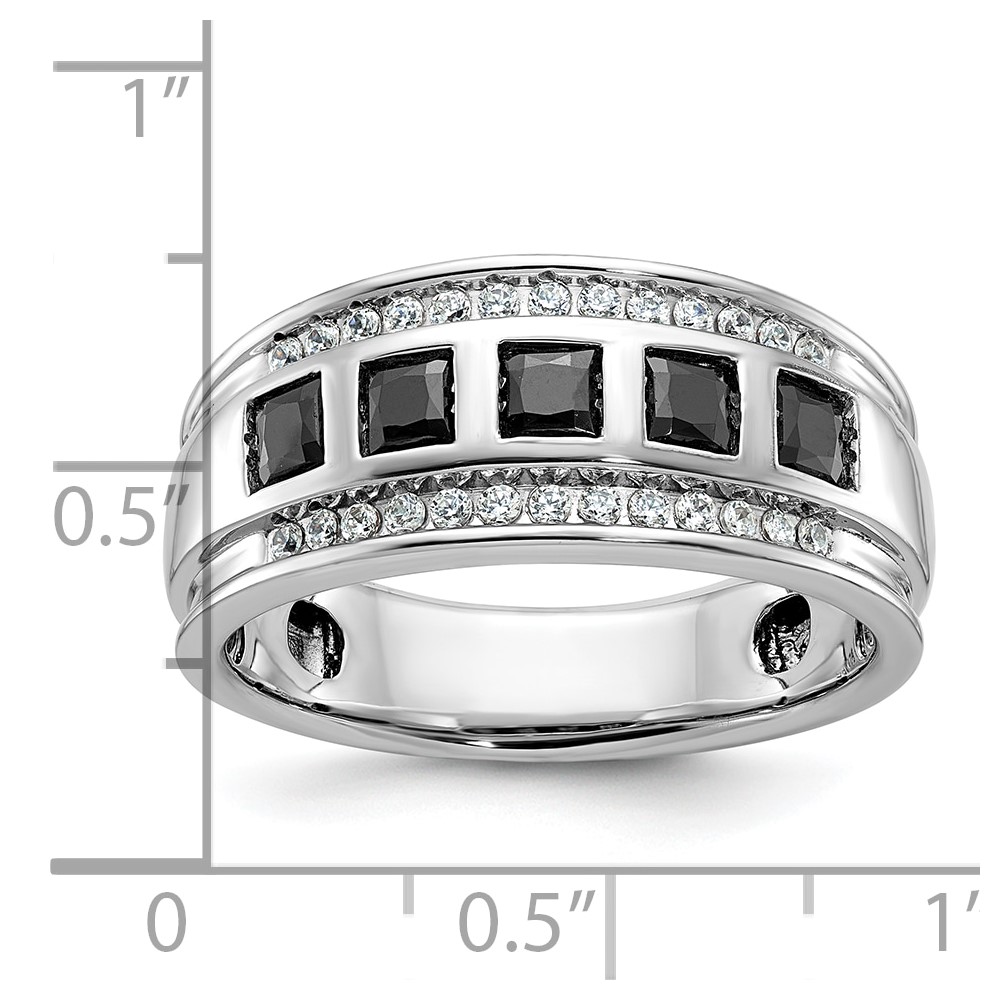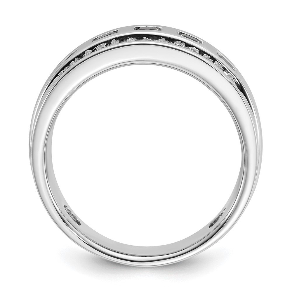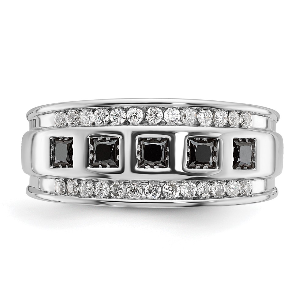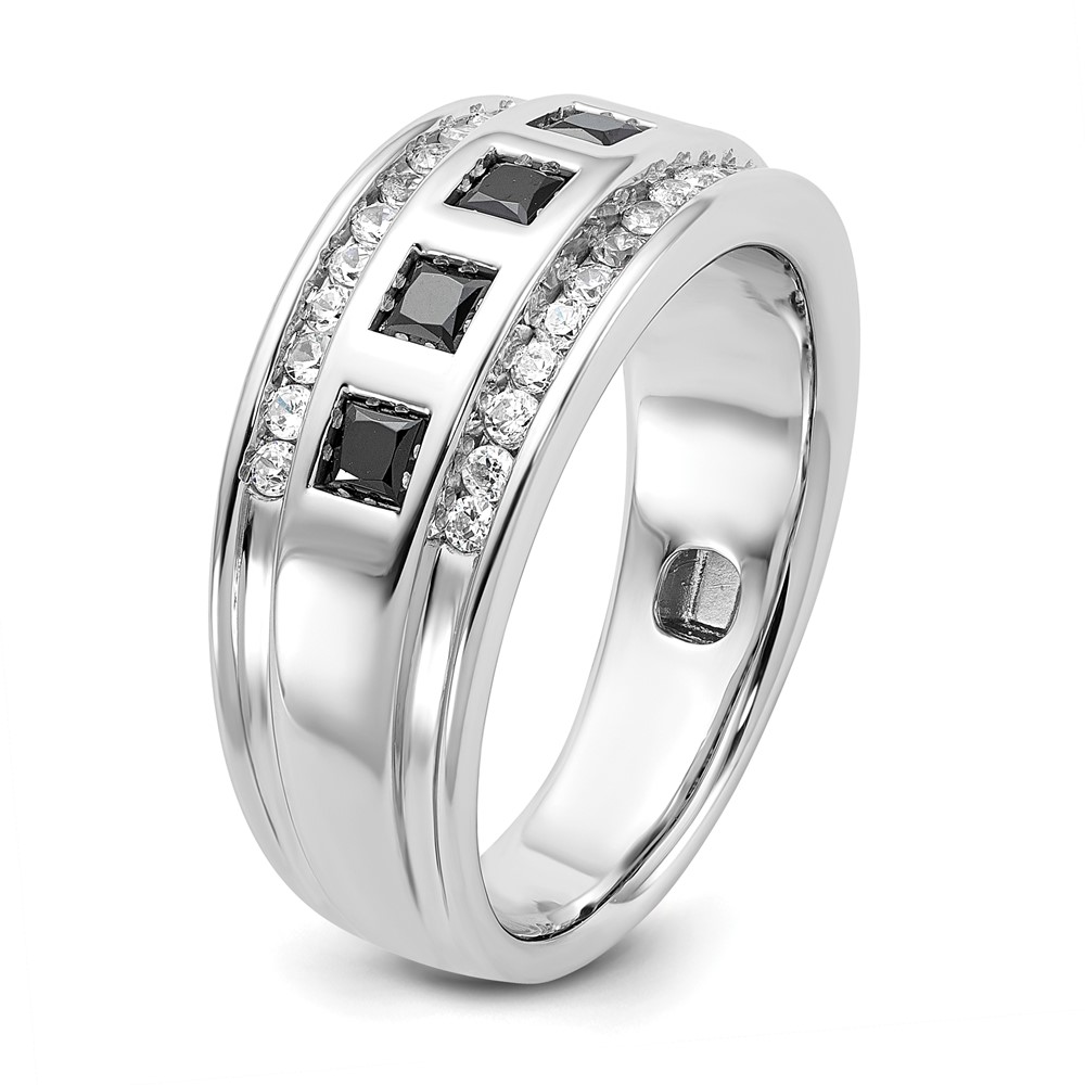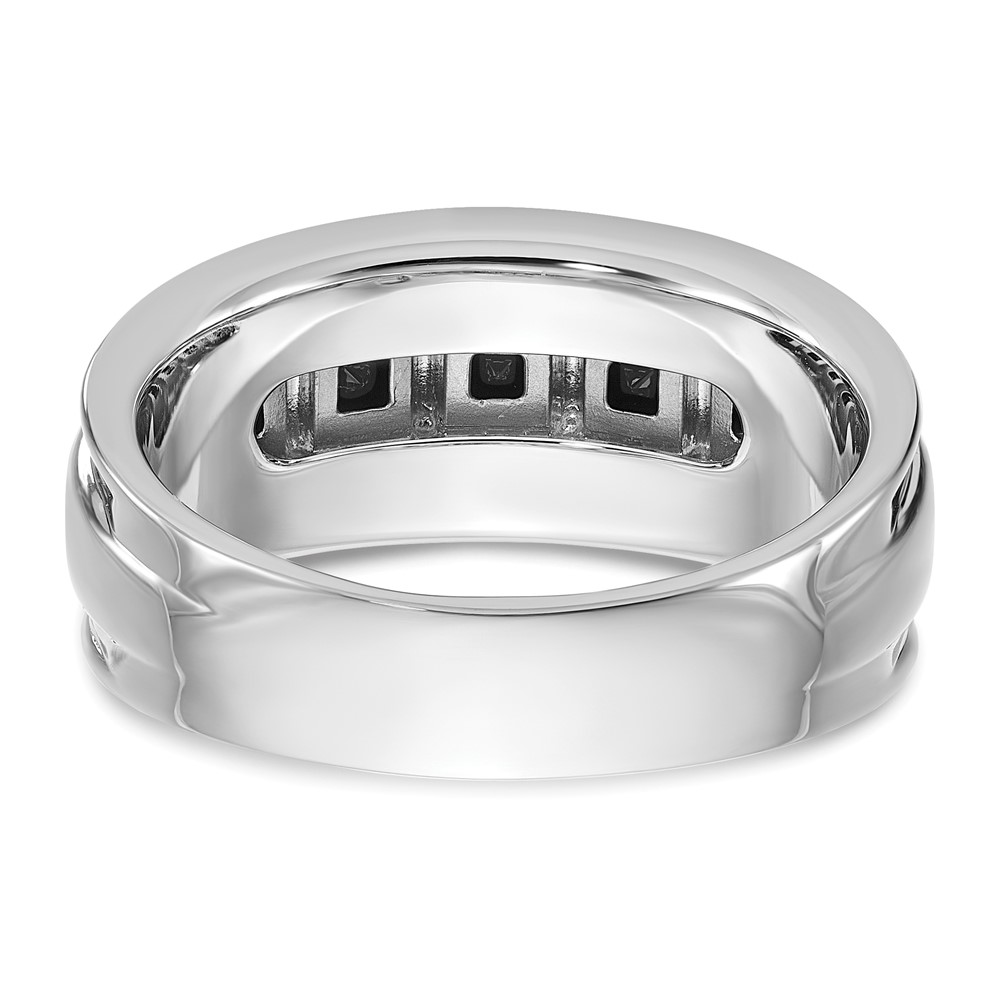 IBGoodman 14k White Gold Men’s Polished and Grooved Square Black and White 1 1/5 Carat AA Quality Diamond 5-Stone Ring
