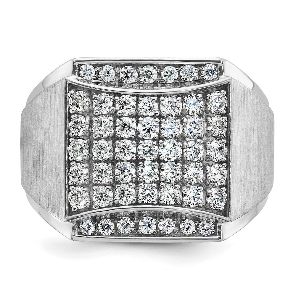 IBGoodman 14k White Gold Men’s Polished and Satin 1 1/5 Carat AA Quality Diamond Cluster Ring
