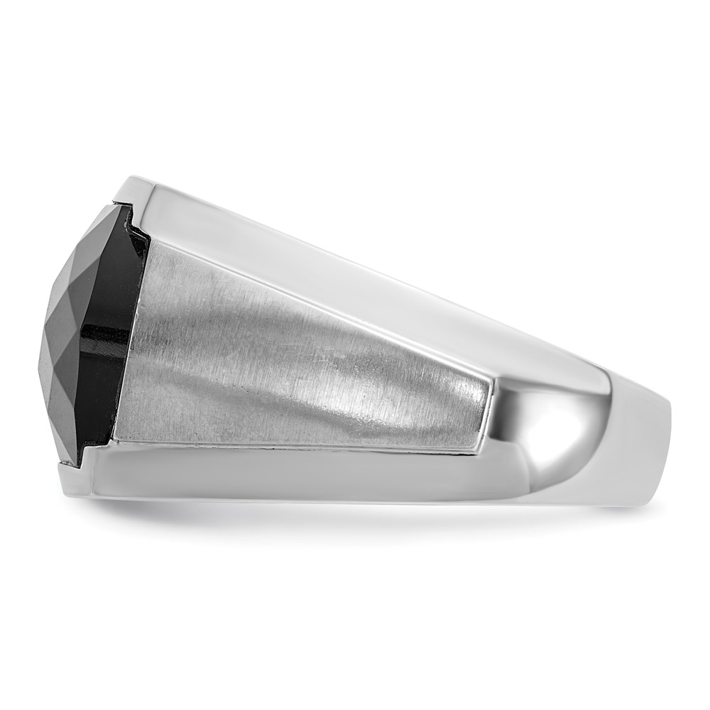 IBGoodman 14k White Gold Men’s Polished and Satin Faceted Onyx and 1/10 Carat AA Quality Diamond Ring