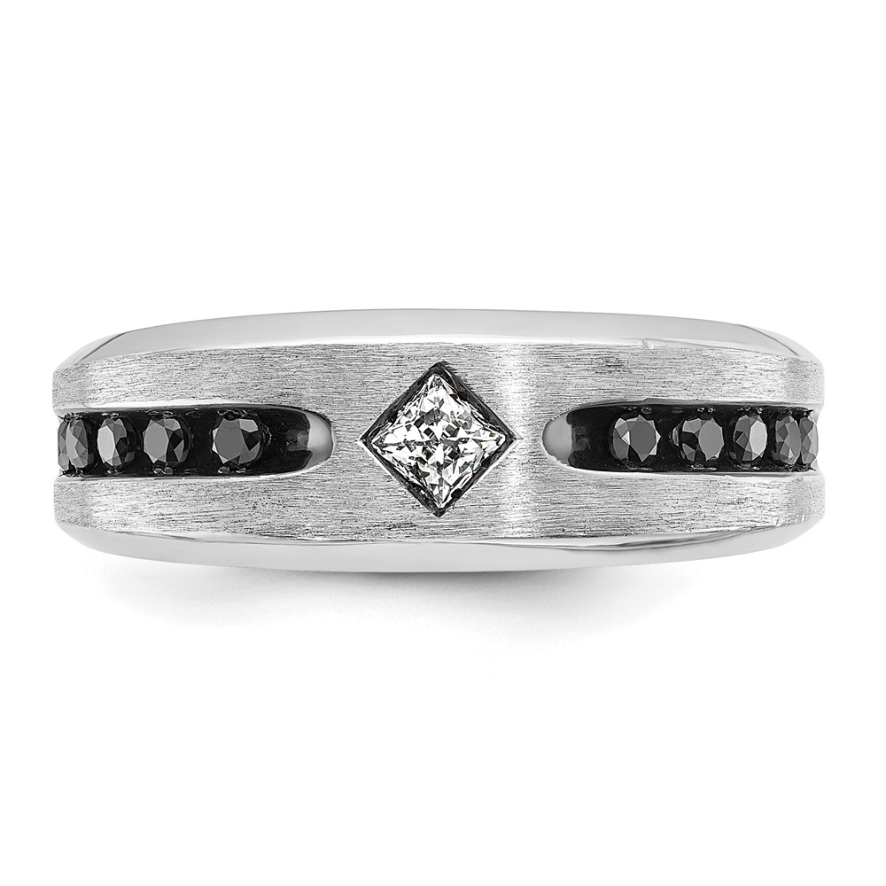 IBGoodman 14k White Gold with Black Rhodium Polished Satin and Grooved 1/2 Carat AA Quality Black and White Diamond Ring