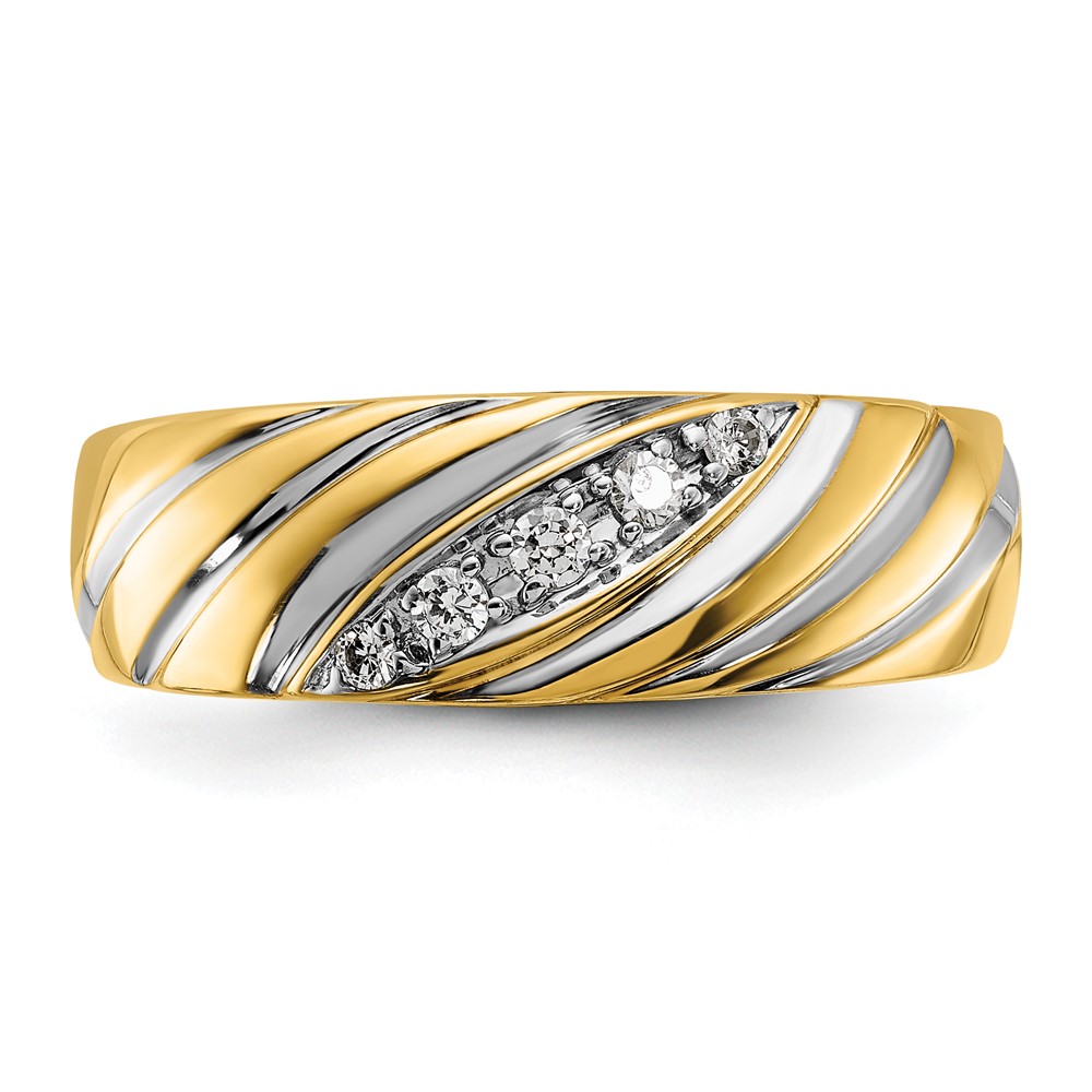IBGoodman 14k with White Rhodium Men’s Polished and Grooved 1/6 Carat AA Quality Diamond Ring