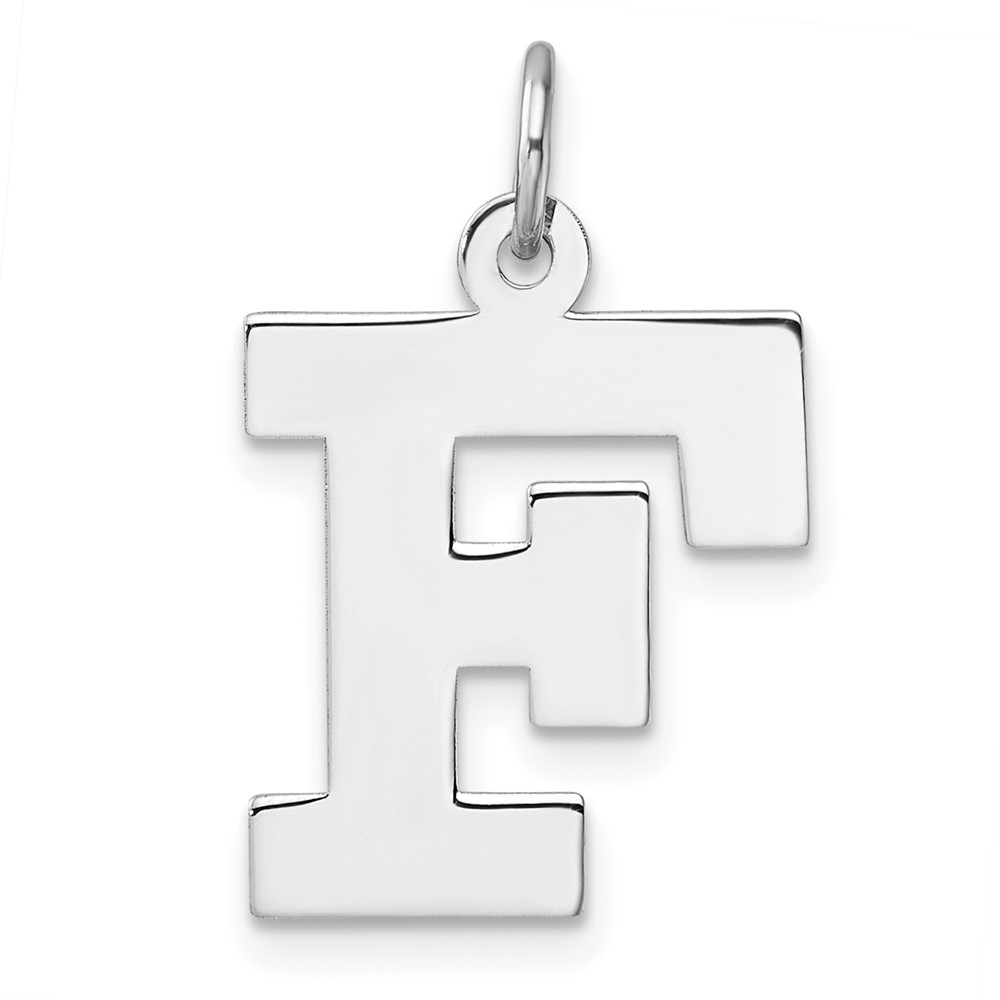 Large Sterling Silver Rhodium-plated Block Letter F Initial Charm