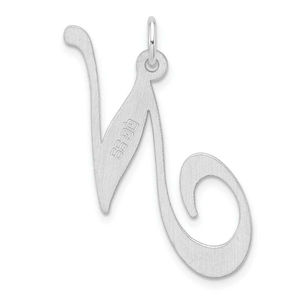 Large Sterling Silver Rhodium-plated Fancy Script Letter N Initial Charm