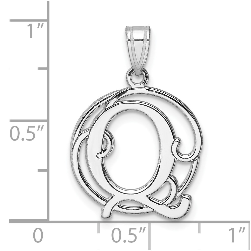 Small Sterling Silver Rhodium-plated Fancy Script Letter Q Initial Pendant
