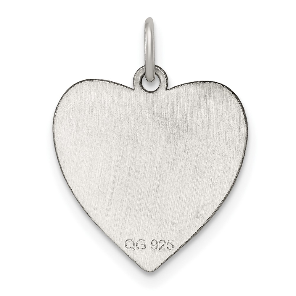 SS Rhod-plated Eng. Heart Polish Front/Satin Back Disc Charm