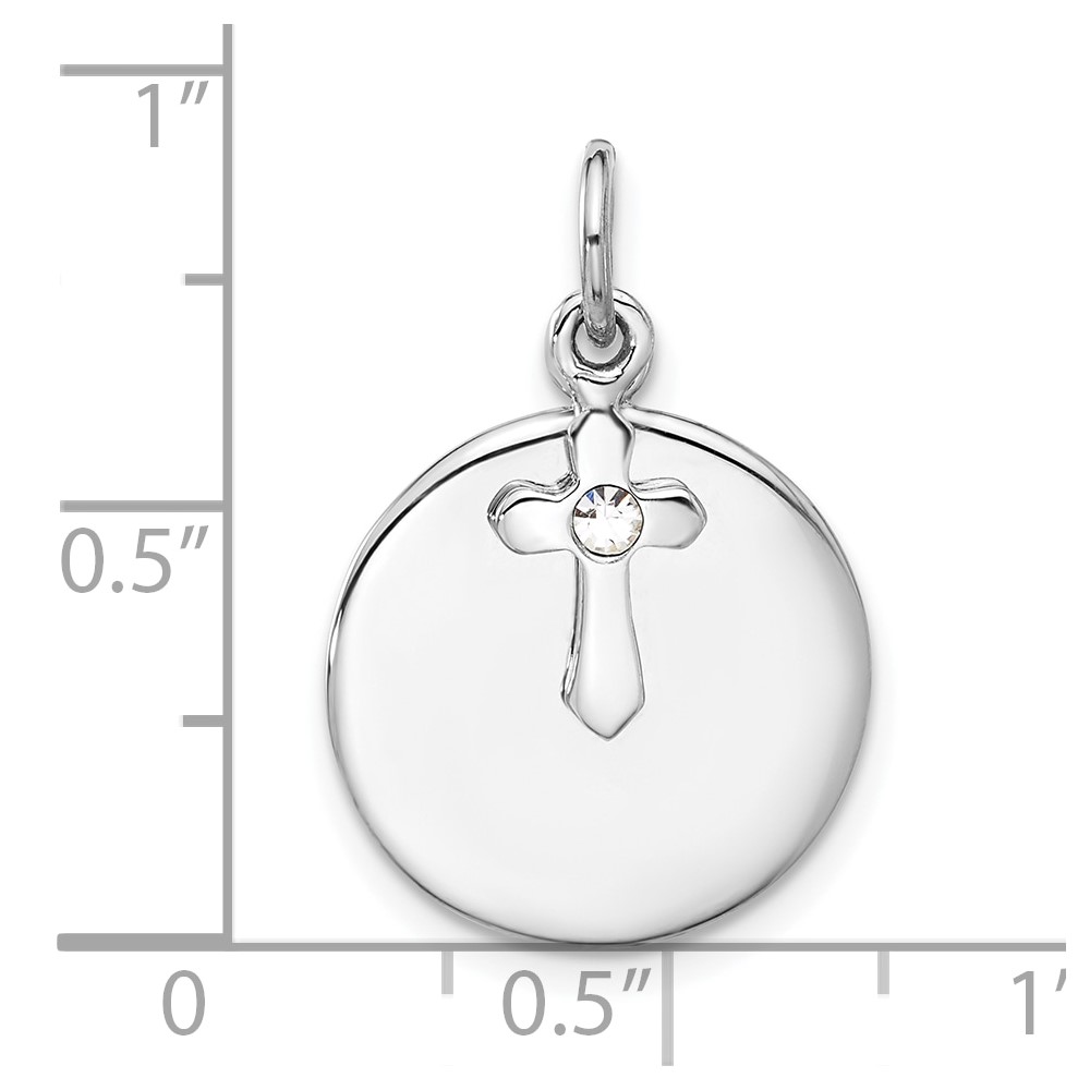 SS Rhodium-plated Circle Disk and Cross with Clear Crystal Pendant