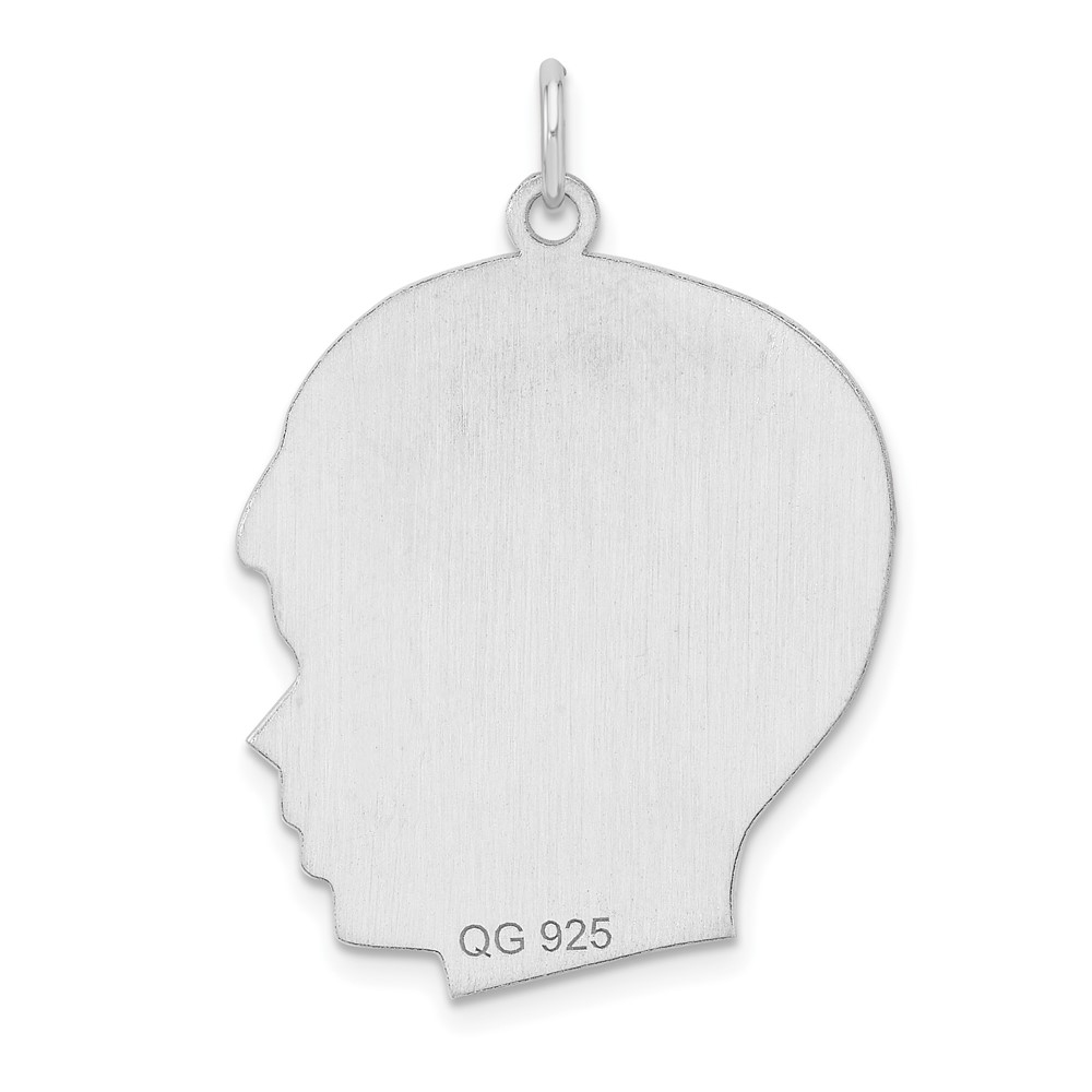 Sterl Silver Rh-plt Engraveable Boy Polished Front/Satin Back Disc Charm
