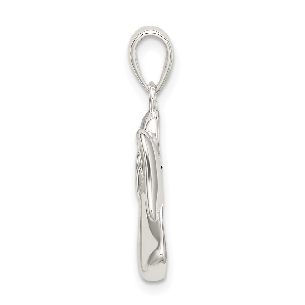 Sterling Silver Angel w/Blue CZ Heart Pendant