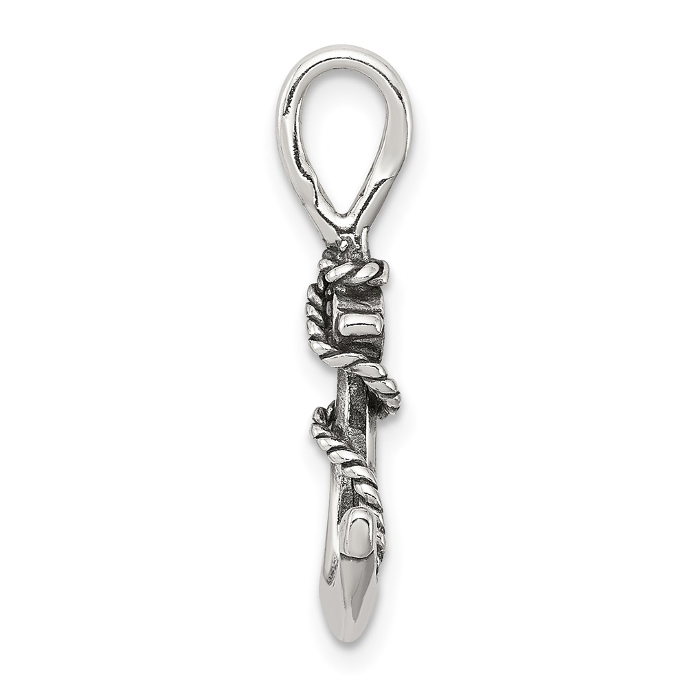 Sterling Silver 3D Antiqued Anchor and Rope Pendant