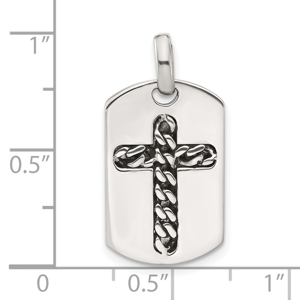 Sterling Silver Antiqued Chain Inlay Cross Dog Tag