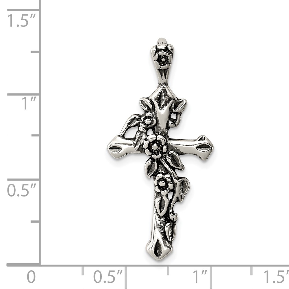 Sterling Silver Antiqued Flowered Cross Pendant