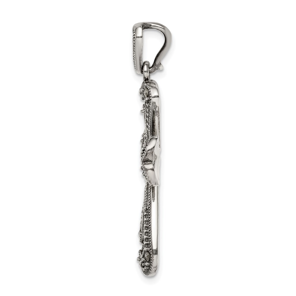 Sterling Silver Antiqued Marcasite and Garnet Cross Pendant