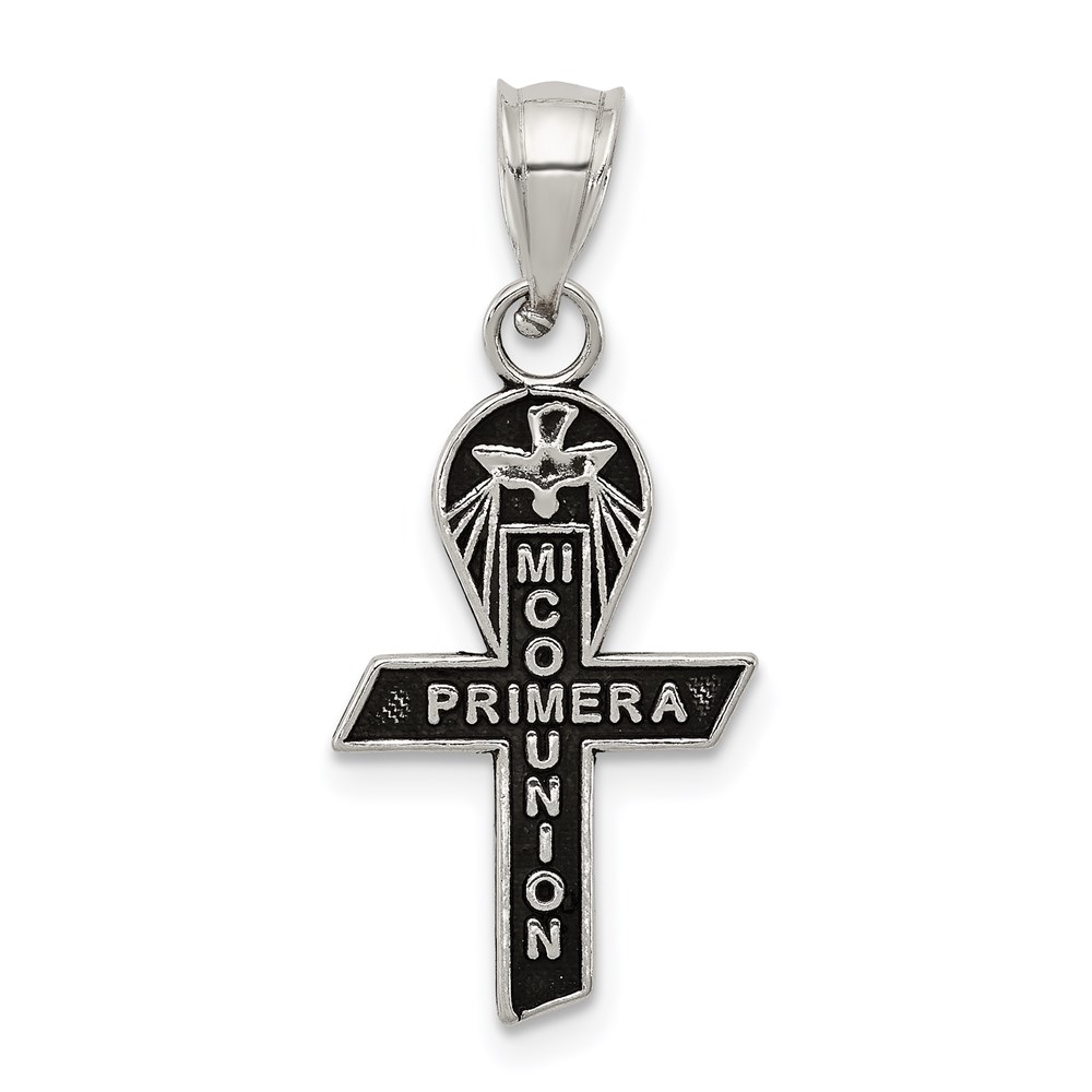 Sterling Silver Antiqued Mi Primera Communion Mini Ribbon Pendant
